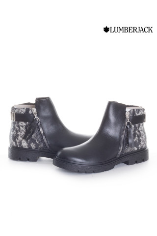 Opis: Ženske, ravne, kratke čizmice izrađene od crne, glatke kože u kombinaciji sa kožom sa zmija printom na sivoj osnovi. Kopčanje rajsferšlusom sa unutrašnje, bočne strane. Ukrašene zipom sa spoljašnje, bočne strane i kaišom sa šnalom u petnom delu. Zaobljeni vrh. Kožni uložak. Naša preporuka je da ovaj model kombinujete uz pantalone i odela. Vaš autfit možete upotpuniti tašnom sa zmija printom (pogledajte brend Doca). Idealan za sve poslovne dame jer predstavlja spoj udobnosti i sofisticiranosti.