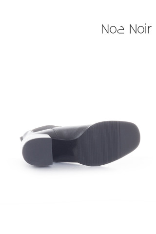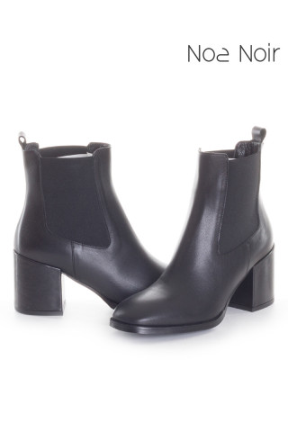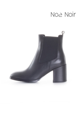 Opis: Ženske, kratke čizmice na navlačenje, sa potpeticom, izrađene od crne, glatke kože. Sa obe bočne strane ubačene elastične trake za lakše obuvanje. Jezičak za povlačenje. Blago zaobljeni, četvrtasti vrh. Kožni uložak. Potpetica visine 7cm. Klasičan model koji predstavlja spoj udobnosti i elegancije. Pravi su izbor svake poslovne žene, jer se ovakve gležnjače idelano kombinuju uz odela.