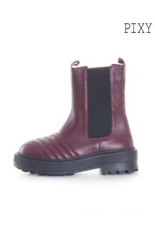 Opis: Ženske, kratke čizmice na navlačenje izrađene od bordo kože. Sa obe bočne strane ubačene eslatične trake za lakše obuvanje. Neobično štepane u prednjem delu. Dva jezička za povlačenje, sa prednje i zadnje strane. Zaobljeni vrh. Kožni uložak. Idealan izbor za sve dame sa casual stilom. Model koji se savršeno kombinuje uz džins i džempere kao i uz kratke i duge, štepane jakne. Predviđen za duge šetnje. Dostupan u još jednoj boji.