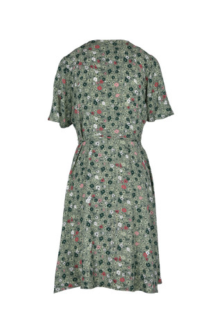 Opis: Haljina kratkih rukava u cvetnom dezenu sa bočnim vezivanjem i V izrezom