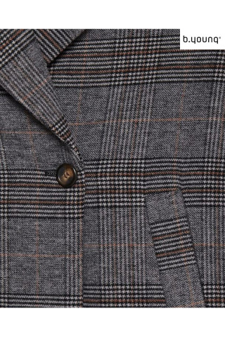 Ženski, karirani, ustručeni kaput na sivoj podlozi sa reverima. Kopčanje sa dva dugmeta sa prednje strane (jedan red). Dva kosa, paspulirana džepa u predelu kukova. Sastav: 70% Poliester, 30% Vuna