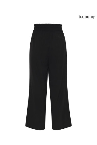 Ženske, široke pantalone, dužine sedam osmina u crnoj boji. Dva kosa džepa u predelu kukova i jedan paspulirani džep pozadi. Četiri falte sa prednje strane. Elastičan pojas sa kaišem na vezivanje. Model dostupan u još jednoj boji. Sastav: 64% Poliester, 32% Viskoza, 4% Elastin