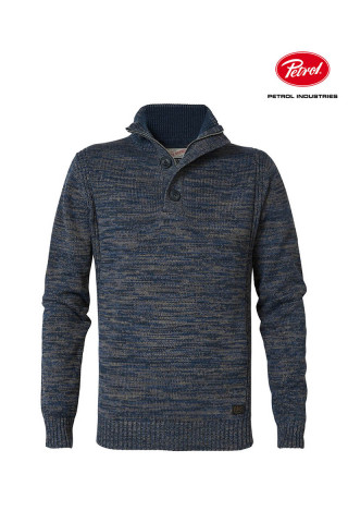 Muški, pleteni, melirani džemper na navlačenje plave boje sa sivim nitima. Visoka kragna na kopčanje rajsferšlusom i sa tri dugmeta. Model dostupan u više boja. Sastav: 100% Pamuk