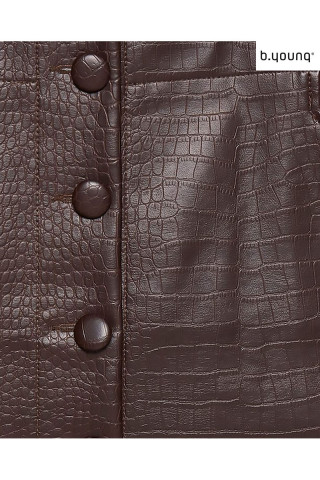 Mini suknja od braon, kroko veštačke kože. Visoki struk. Elastičan pojas. Kopčanje dugmićima sa prednje strane. Sastav: 100% Poliuretan