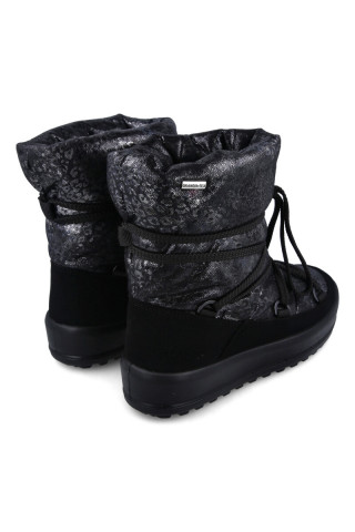 Opis: Vodootporne ženske čizme u metalik crnoj boji sa toplom postavom, pertlama i logo pločicom