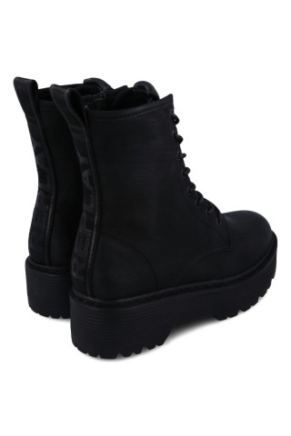 Opis: Poluduboke ženske čizme u crnoj boji sa logo trakom i pertlama
