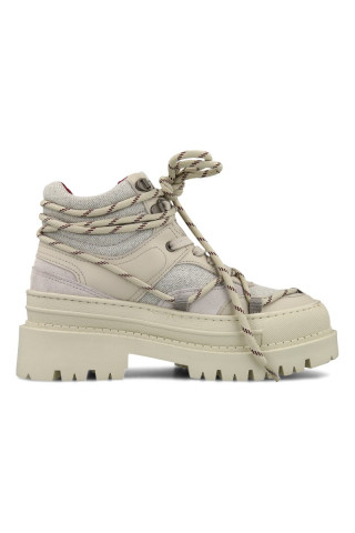 Opis: Poluduboke ženske čizme u svetlo bež boji sa multicolor pertlama i naglašenim đonom