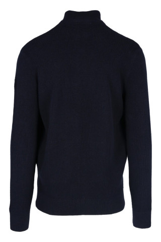 Opis: Pamučni muški džemper u teget boji sa zipom i visokom kragnom