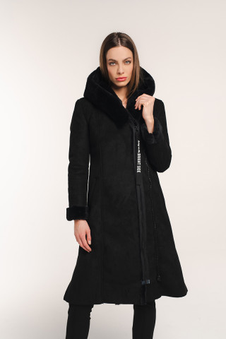 Opis: Ženski monton u crnoj boji sa kapuljačom i krznenim detaljima