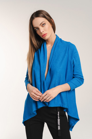 Opis: Ženski kardigan asimetrične dužine u marin plavoj boji