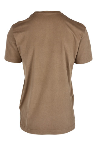 Opis: Pamučna muška majica u tamno bež boji sa kratkim rukavima i logo printom