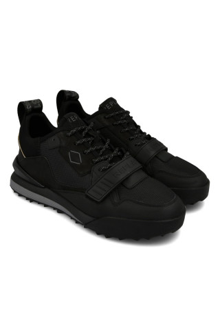 Opis: Kožne muške patike u crnoj boji sa blago podignutim đonom i čičak trakom