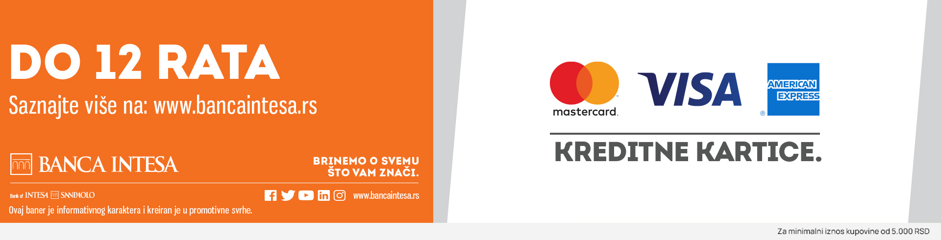 Nudimo Vam mogućnost plaćanja na rate, do 12 mesečnih rata, koristeći Visa, MasterCard ili American Express kartice izdate od Banca Intesa.