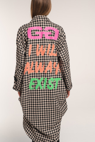 Opis: Ženski asimetrični kardigan u pepito dezenu sa multicolor printom i džepovima