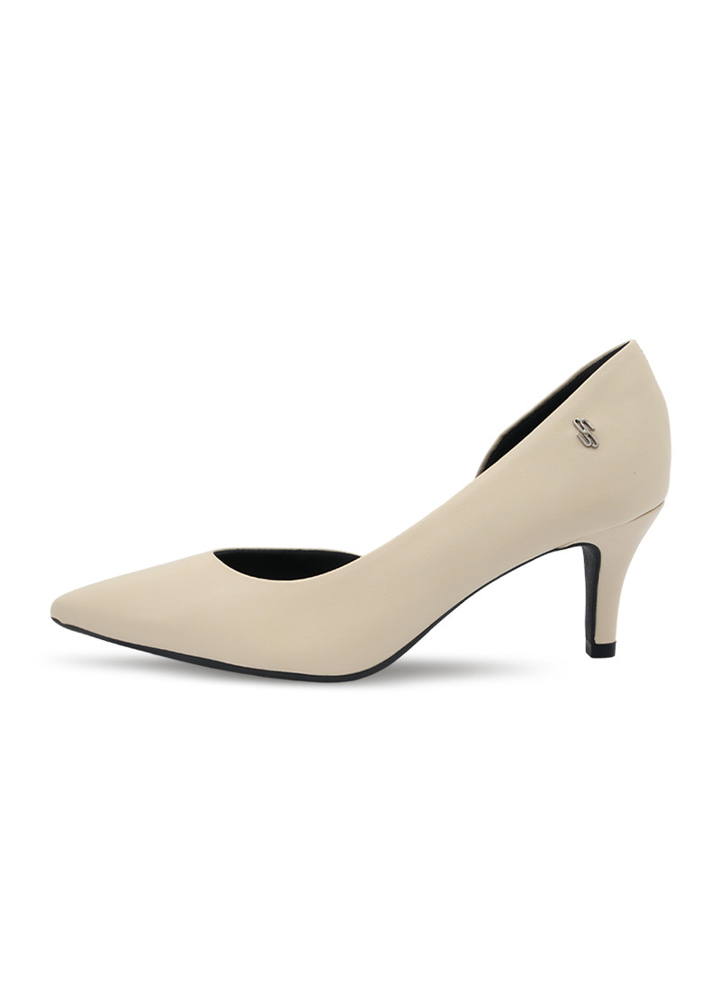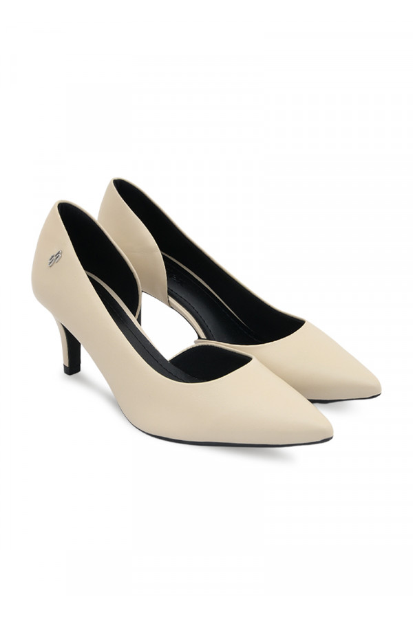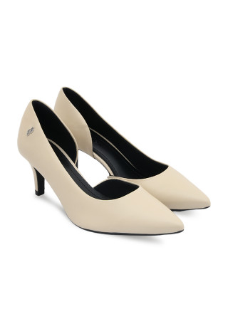 Opis: Kožne ženske cipele u boji vanile sa metalnim logo detaljem i visinom potpetice 7 cm