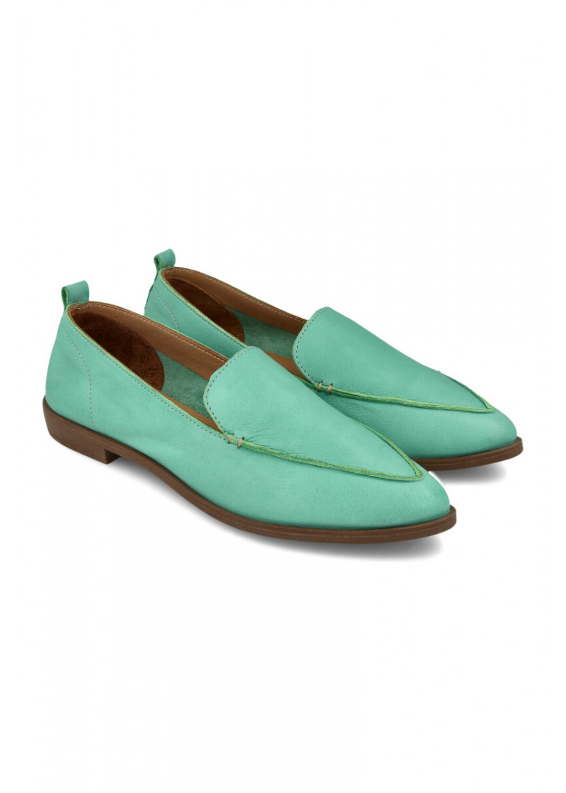 Opis: Kožne ženske ravne cipele u mint zelenoj boji