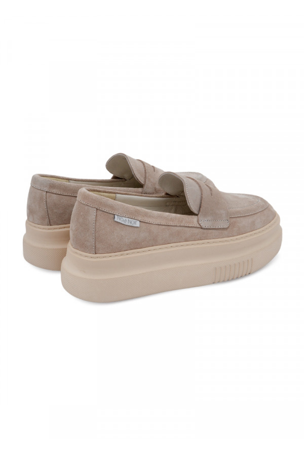 Opis: Kožne ženske ravne cipele u tamno bež boji sa izdignutim đonom