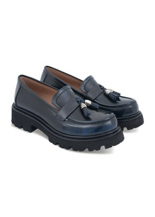 Opis: Kožne ženske ravne cipele u teget boji sa resama i naglašenim đonom