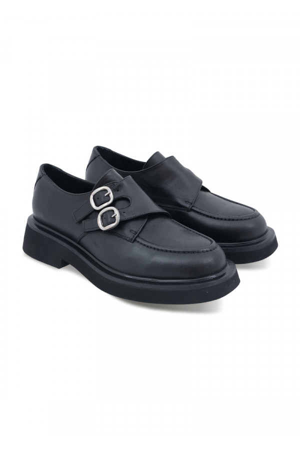 Opis: Kožne ženske ravne cipele u crnoj boji sa bočnim kaiševima
