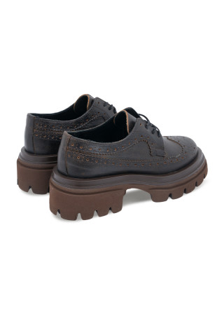 Opis: Kožne ženske ravne cipele u tamno braon boji sa zumbanim detaljima, pertlama i naglašenim đonom