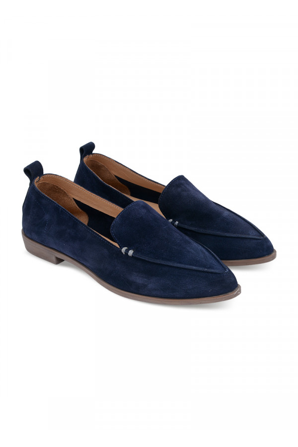Opis: Kožne ženske ravne cipele u teget boji sa špicastim vrhom