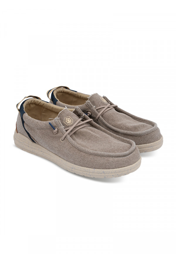 Opis: Plitke muške platnene cipele u boji peska sa pertlama i logo printom