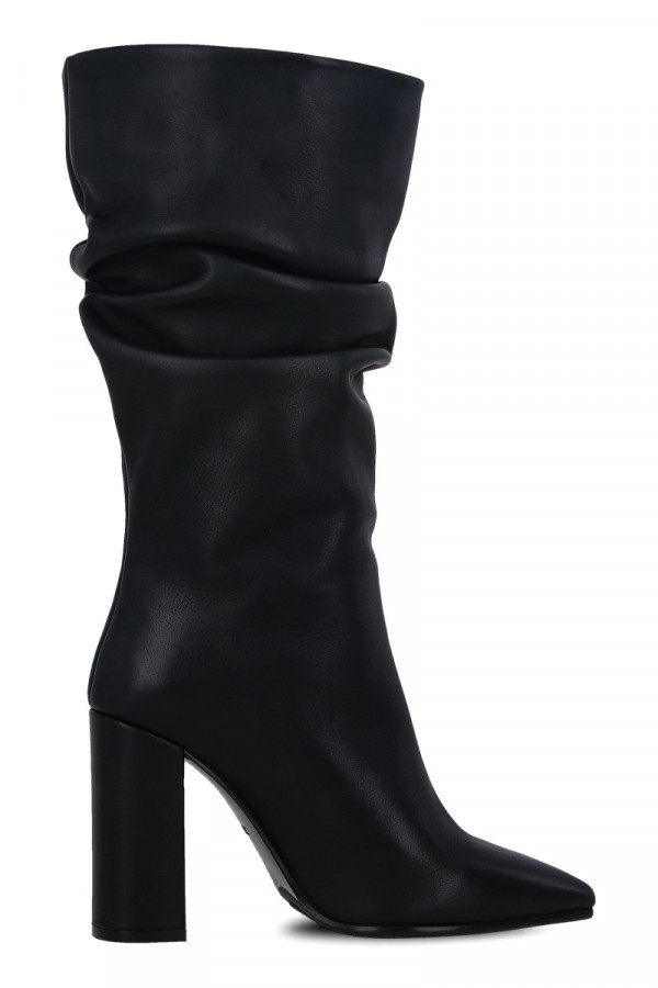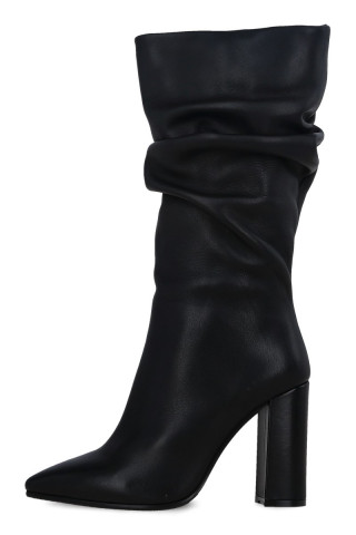 Opis: Kožne ženske nabrane čizme u crnoj boji sa potpeticom visine 10 cm