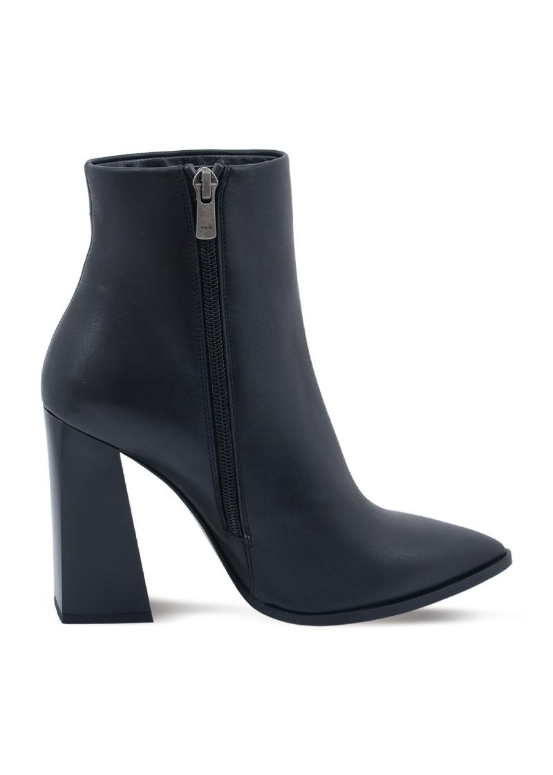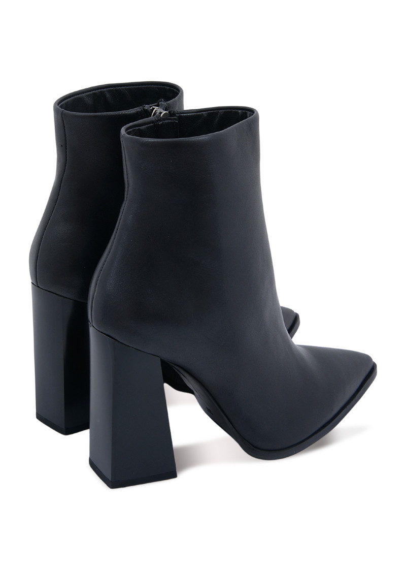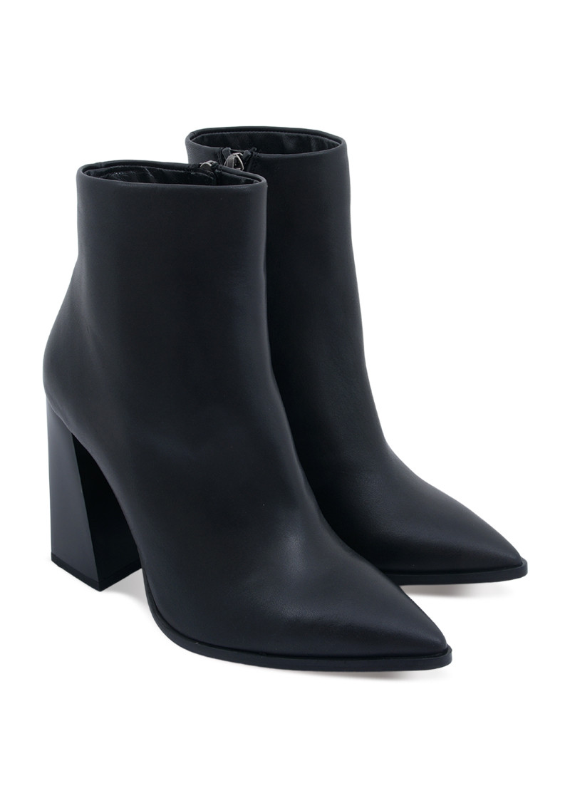 Opis: Kožne ženske poluduboke čizme u crnoj boji sa špicastim vrhom i bočnim zipom