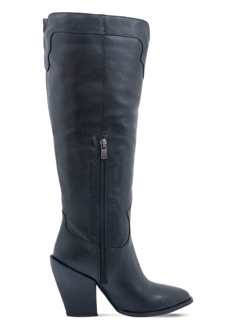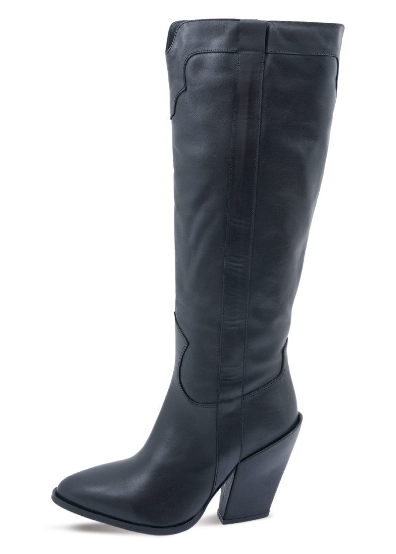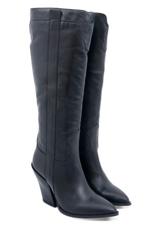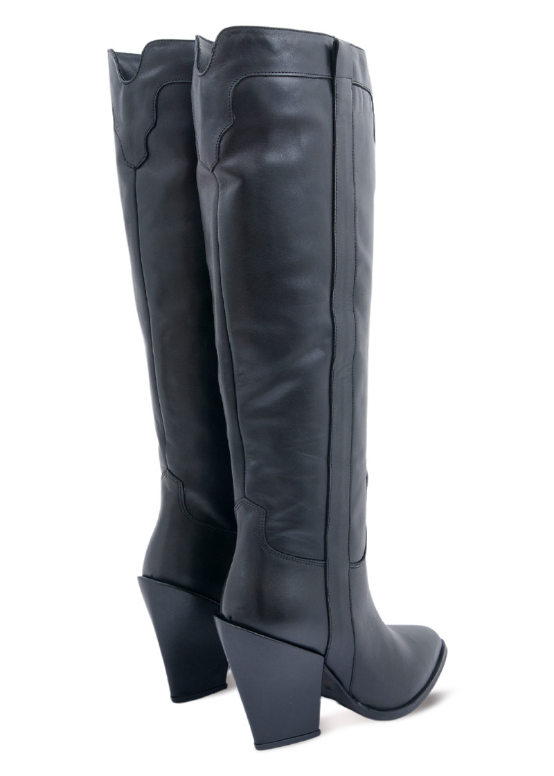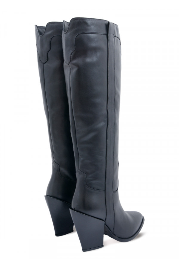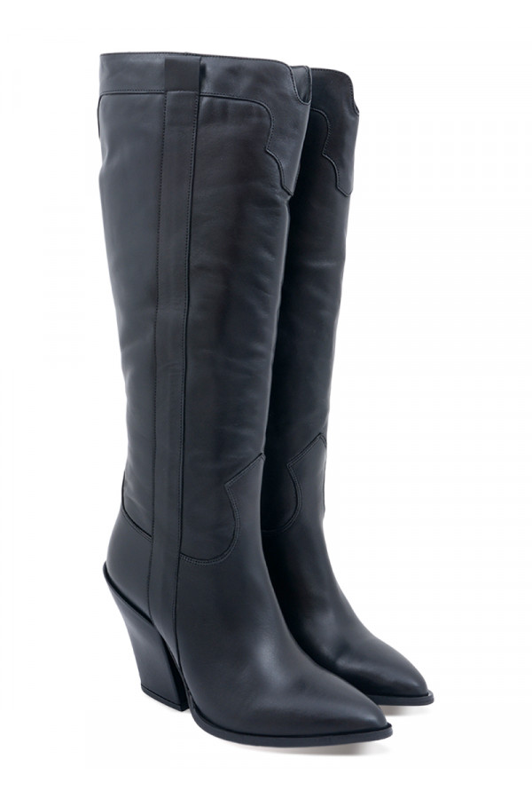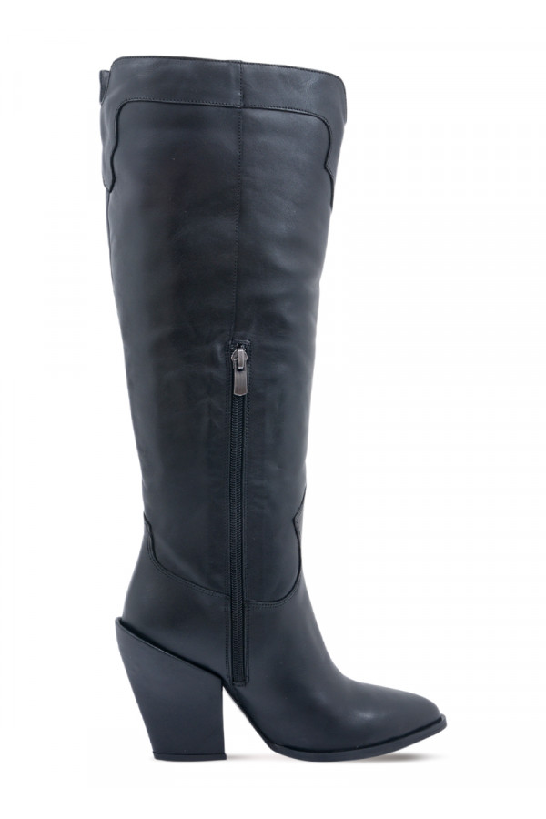 Opis: Kožne duboke ženske čizme u crnoj boji sa špicastim vrhom i bočnim zipom