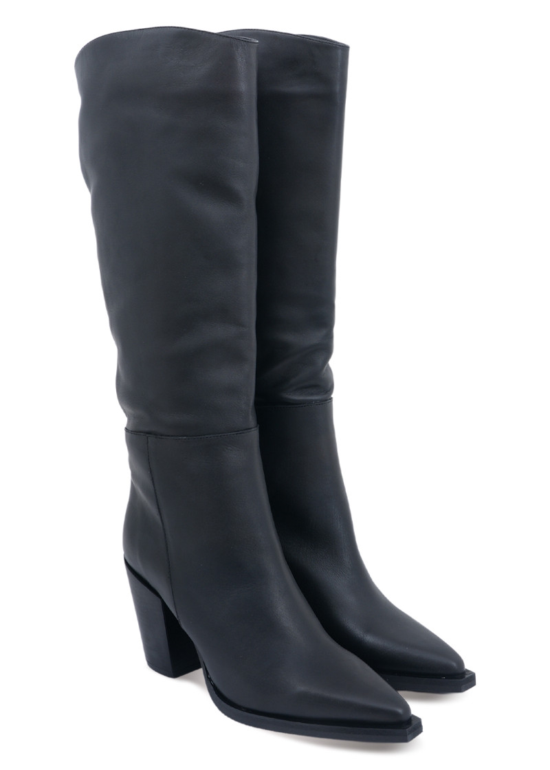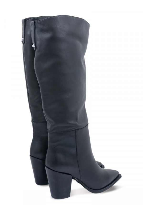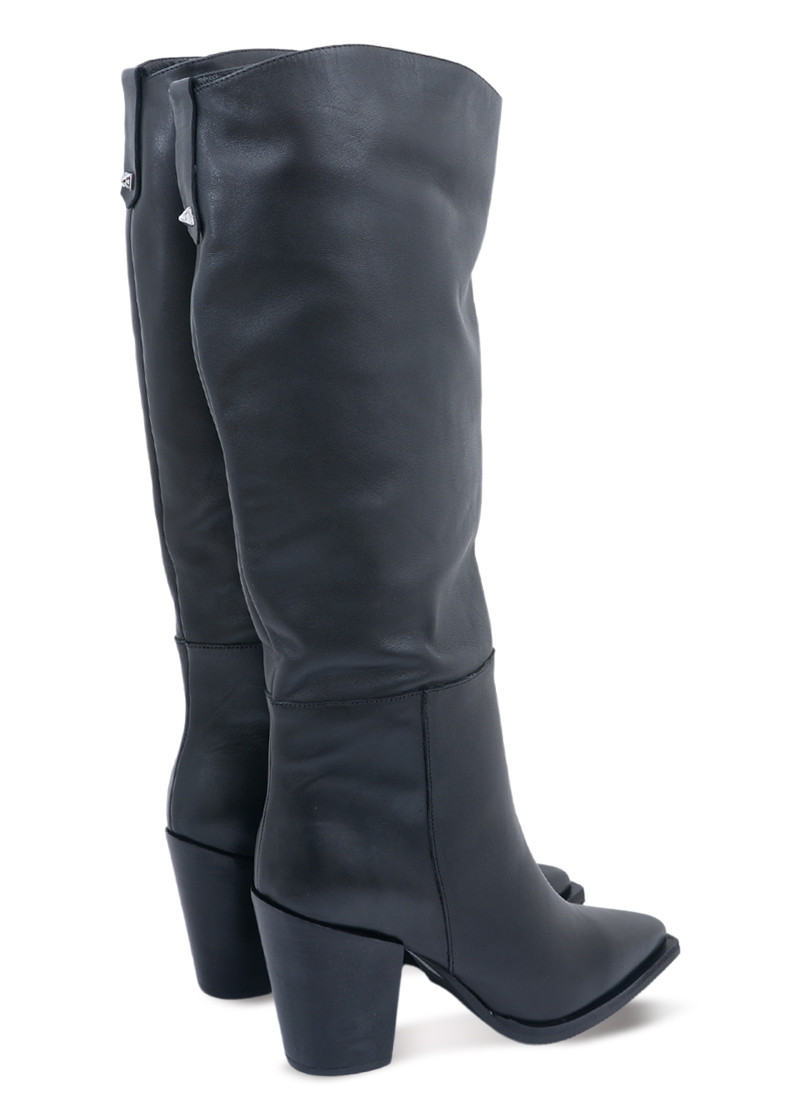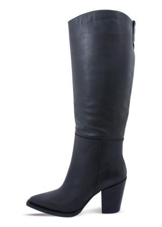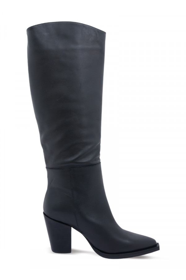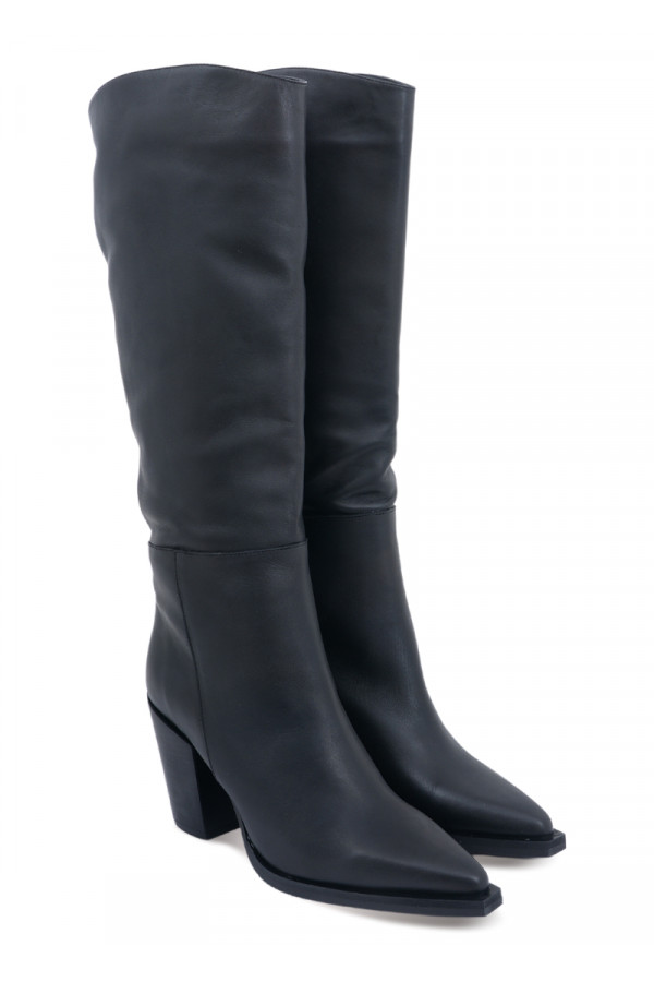 Opis: Kožne duboke ženske čizme u crnoj boji sa visokom potpeticom i špicastim vrhom
