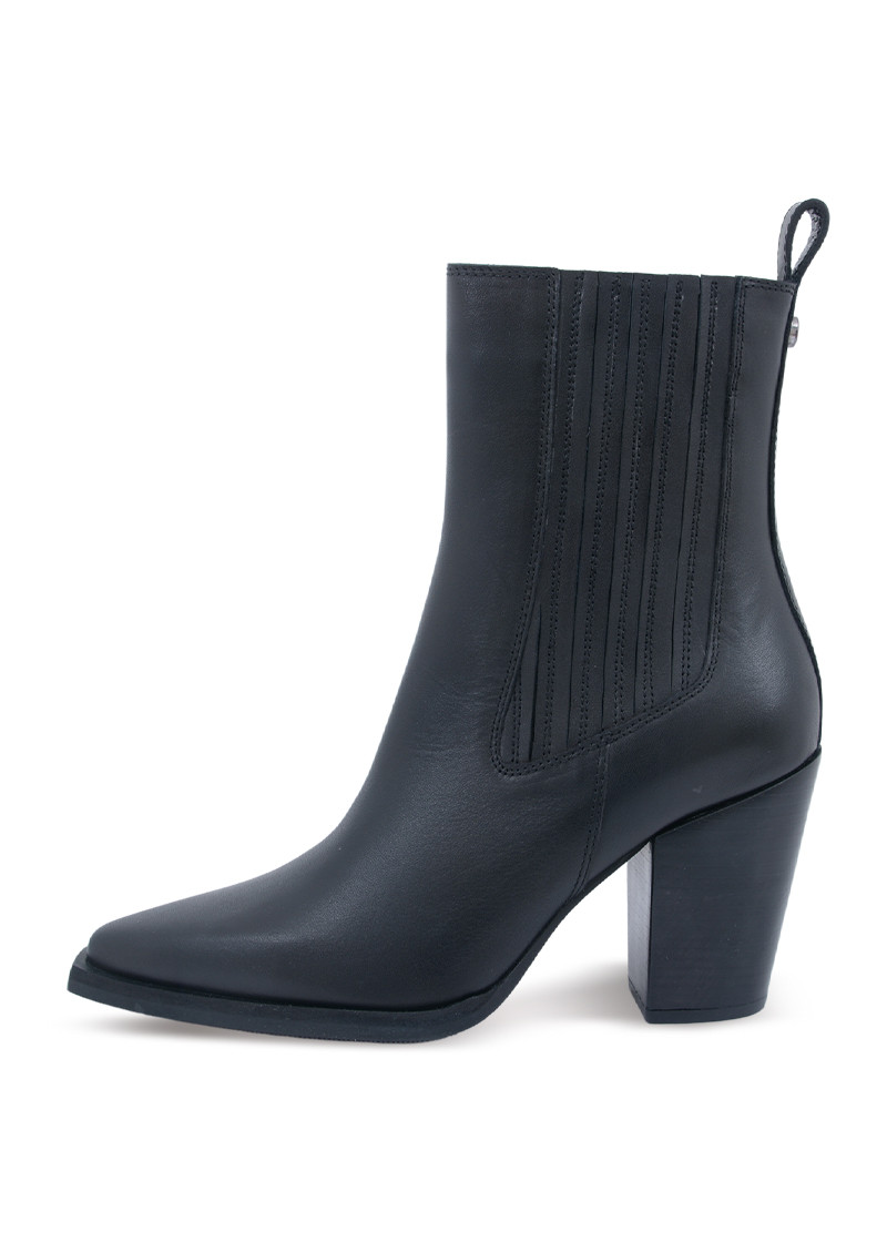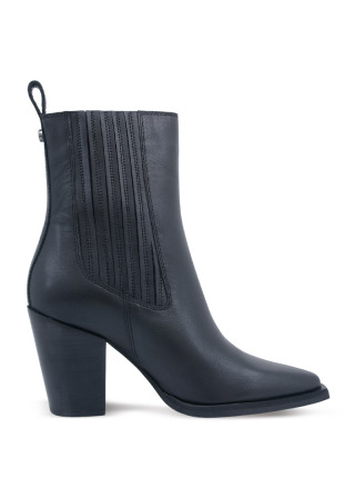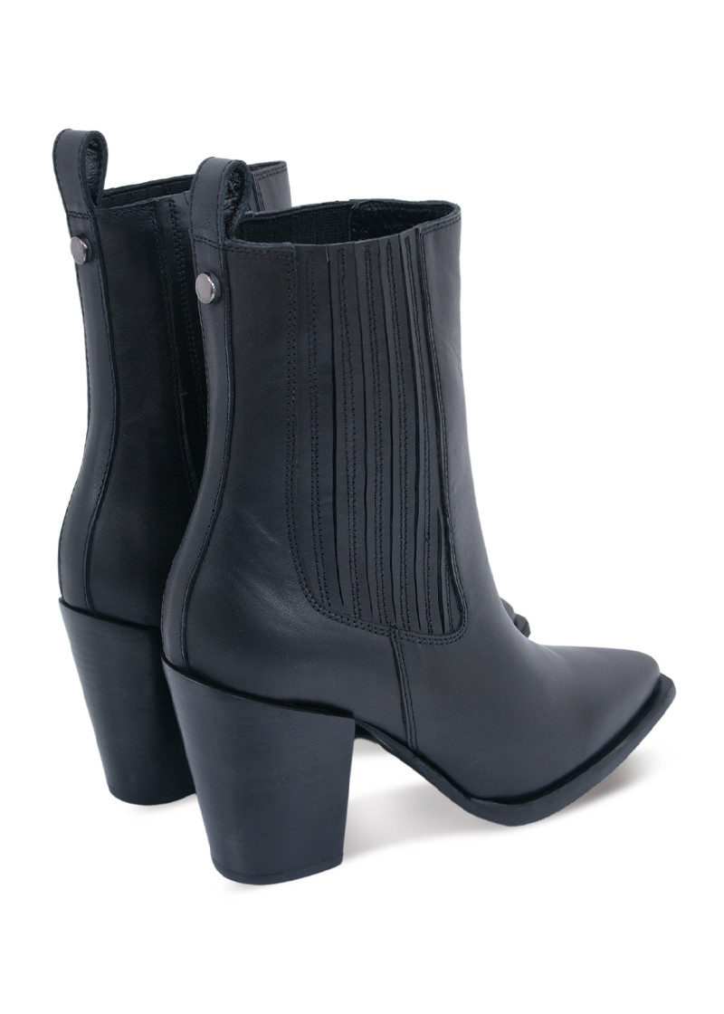 Opis: Kožne ženske poluduboke čizme u crnoj boji sa špicastim vrhom i potpeticom