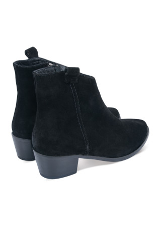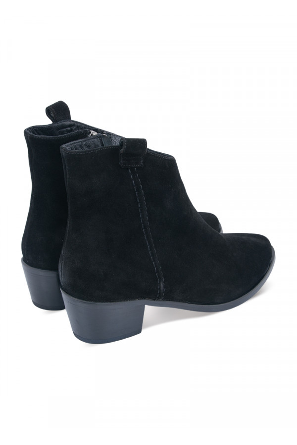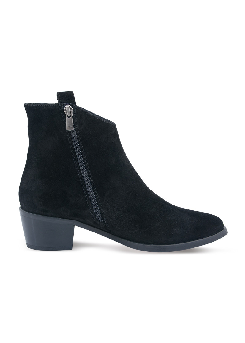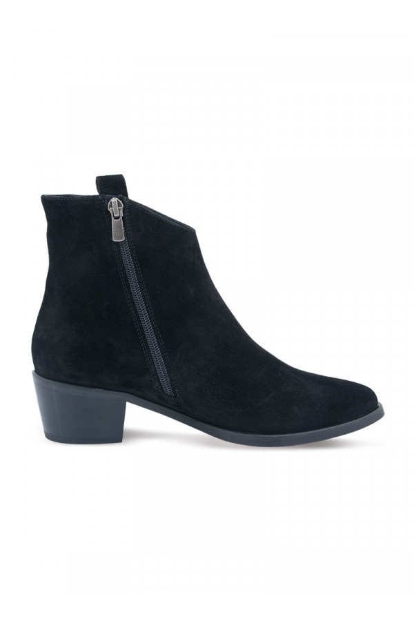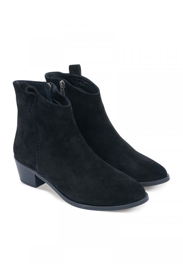 Opis: Ženske plitke čizme od prevrnute kože u crnoj boji sa bočnim zipom