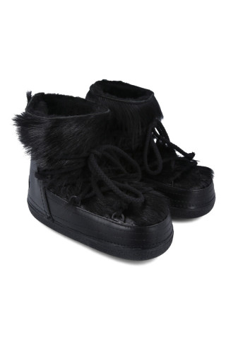 Opis: Kožne ženske zimske čizme neobičnog dizajna, sa hand made kožom u crnoj boji i pertlama