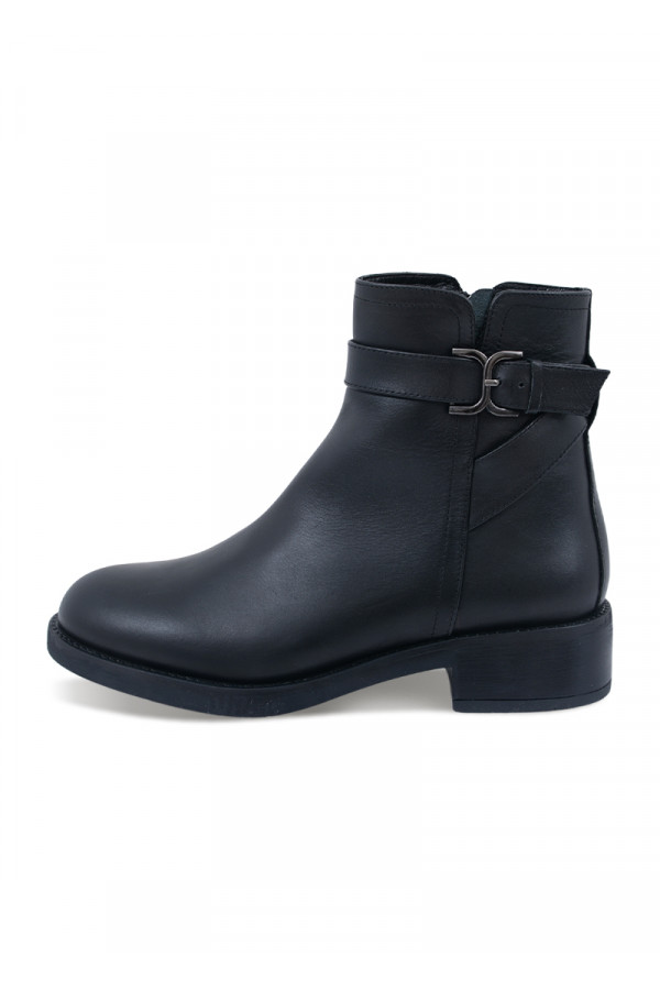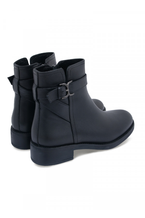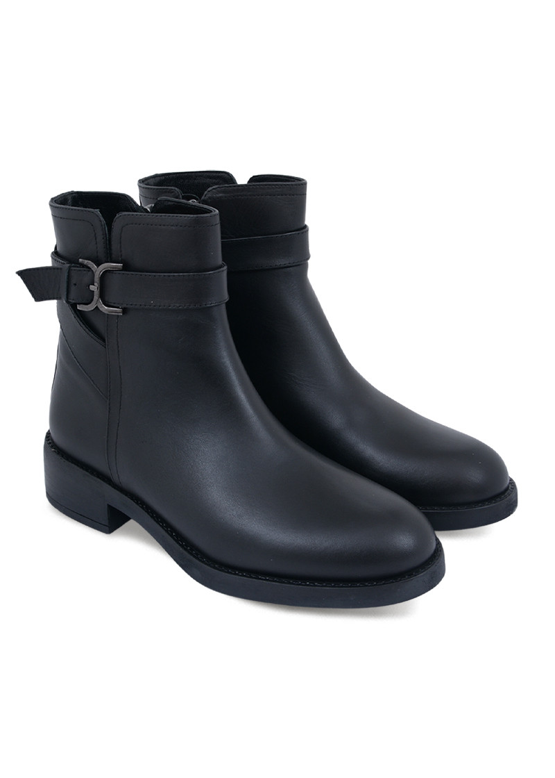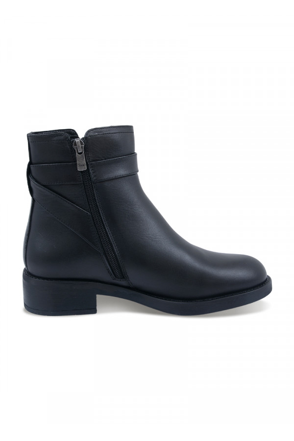 Opis: Kožne ženske ravne čizme u crnoj boji sa bočnim zipom i kaišem