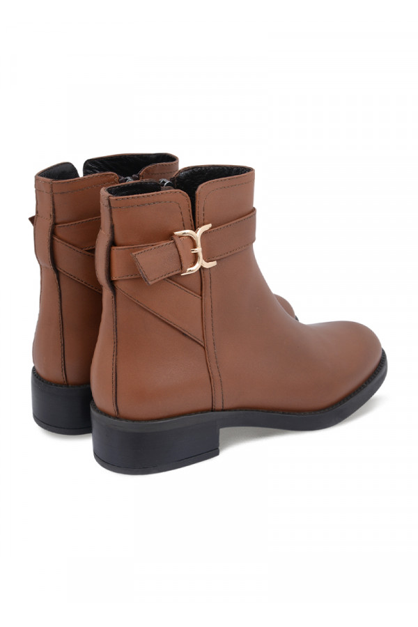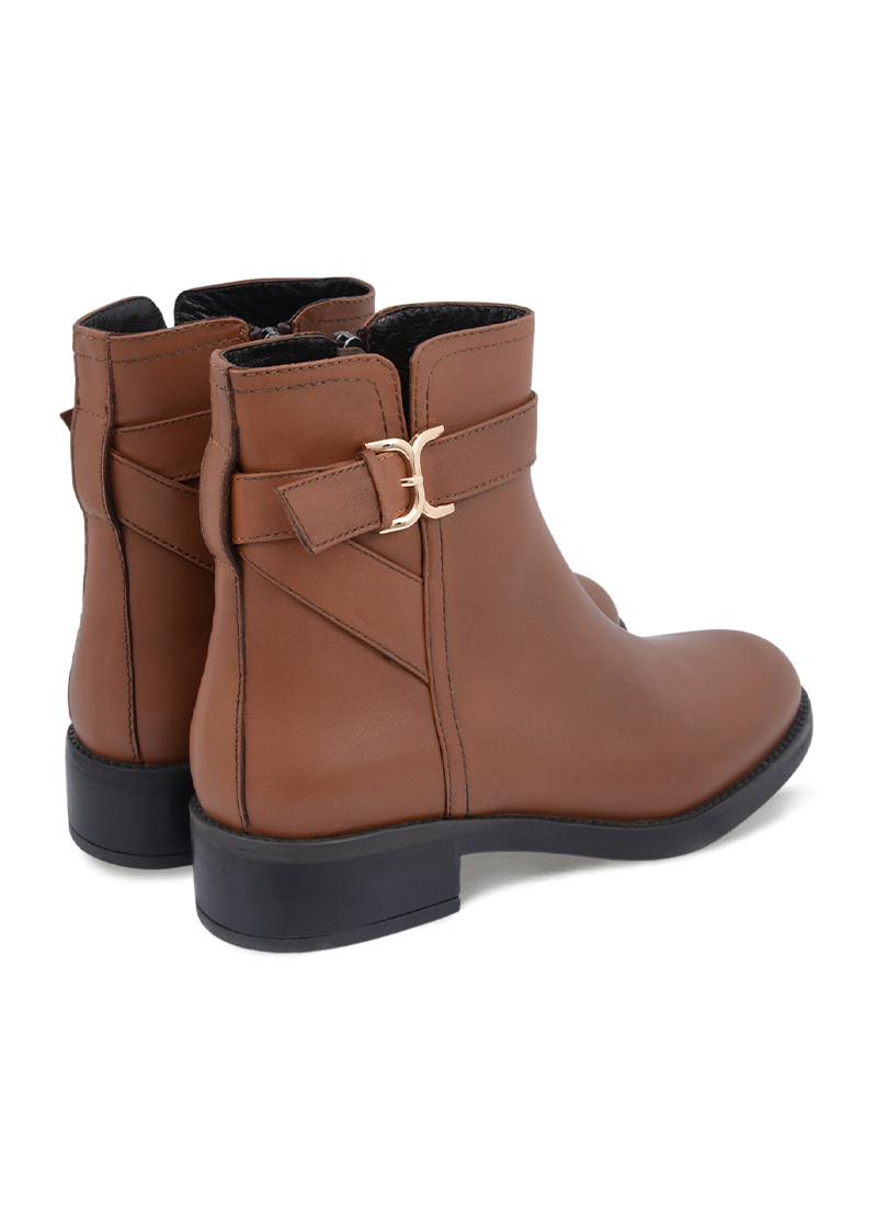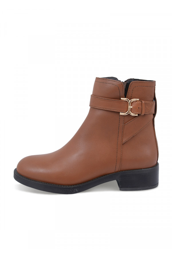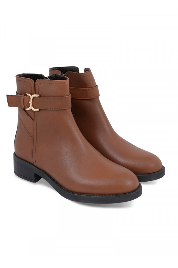 Opis: Kožne ženske ravne čizme u duvan boji sa bočnim zipom i kaišem