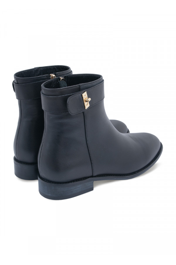 Opis: Kožne ženske ravne čizme u crnoj boji sa bočnim zipom i metalnom kopčom