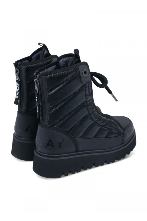 Opis: Ženske čizme u crnoj boji sa štepovima, pertlama i zipom iznad pete