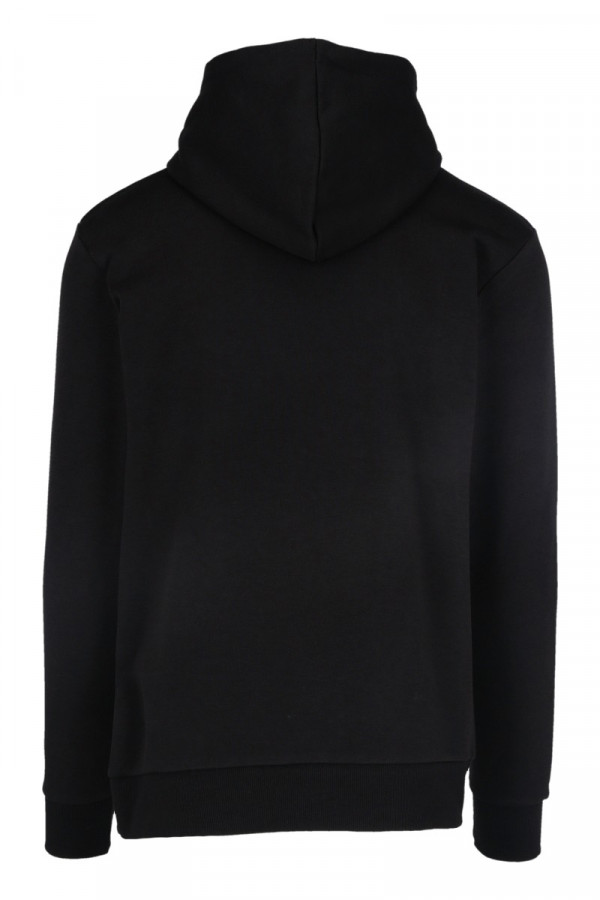 Opis: Muški duks u crnoj boji sa kapuljačom i logo printom