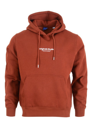 Opis: Pamučni muški regular fit duks u narandžastoj boji sa kapuljačom, printom i kengur džepom