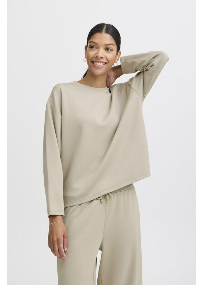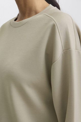 Opis: Ženski duks u bež boji ravnog kroja sa okruglim izrezom oko vrata