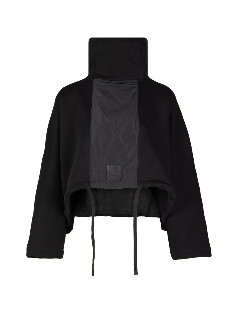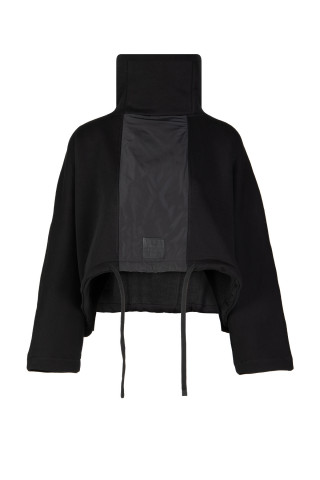 Opis: Kratak ženski duks u crnoj boji sa učkurom i rol kragnom