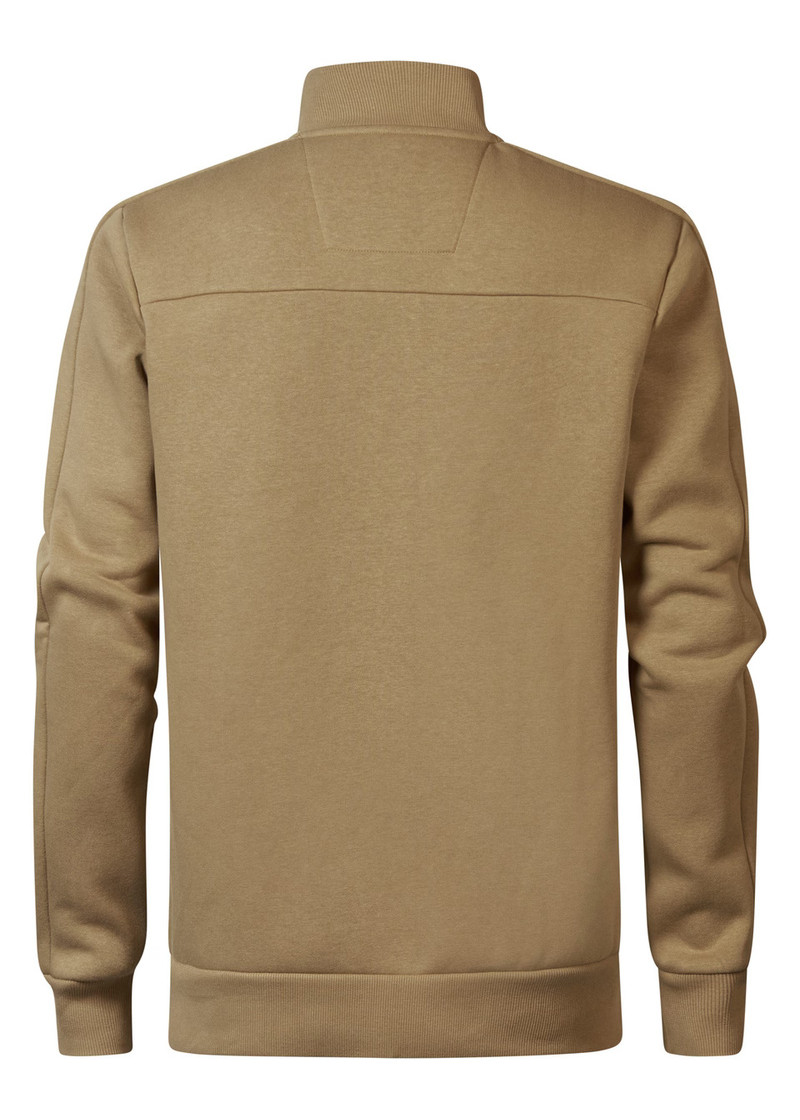 Opis: Muški duks u oker boji sa zipom, bočnim džepovima i visokom kragnom