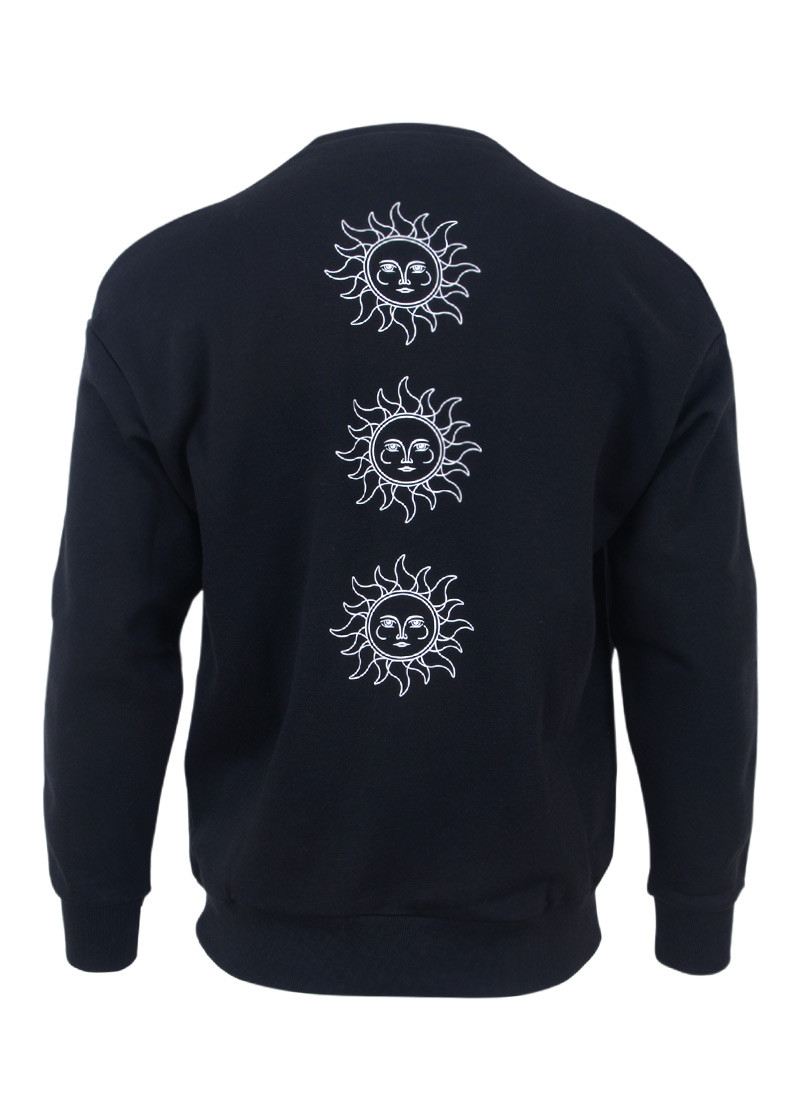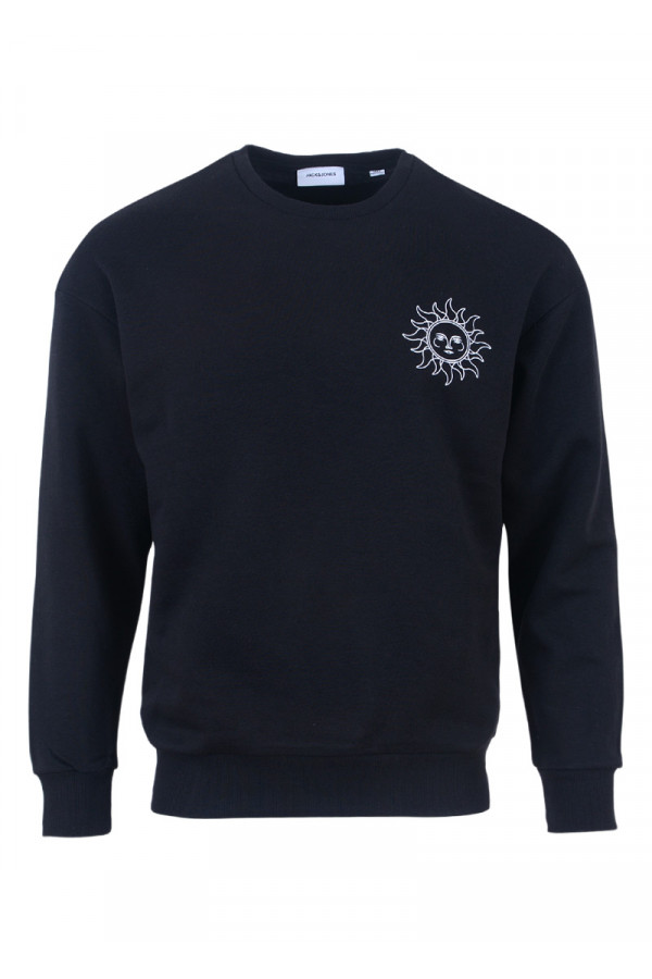 Opis: Muški duks u crnoj boji sa okruglim izrezom oko vrata i printom