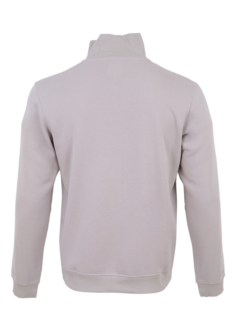 Opis: Muški džmper u bež boji sa zip kragnom i ranflom