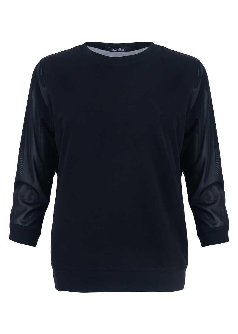 Opis: Ženski duks u crnoj boji sa dugim rukavima i printom na leđima