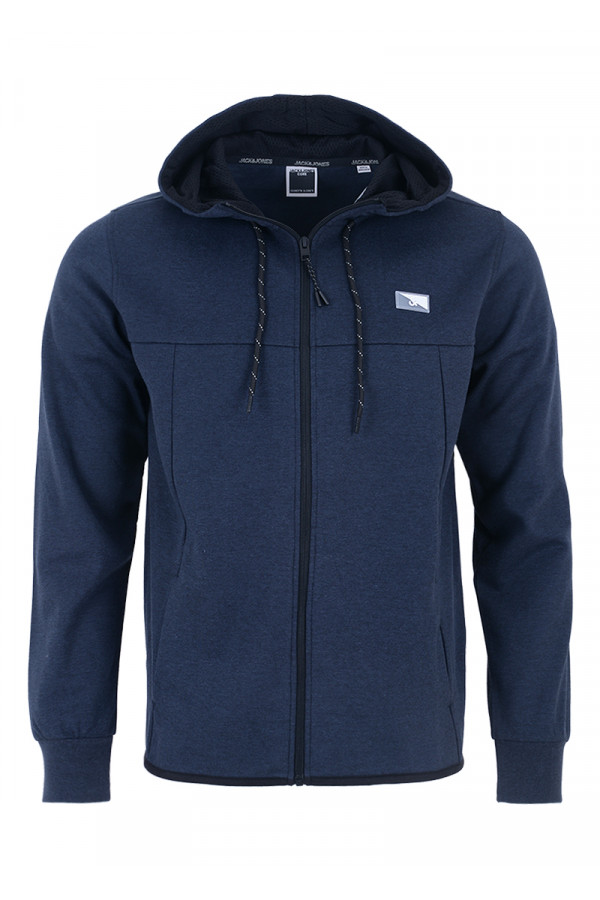 Opis: Muški duks u teget boji sa bočnim džepovima, kapuljačomi zipom