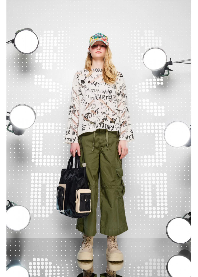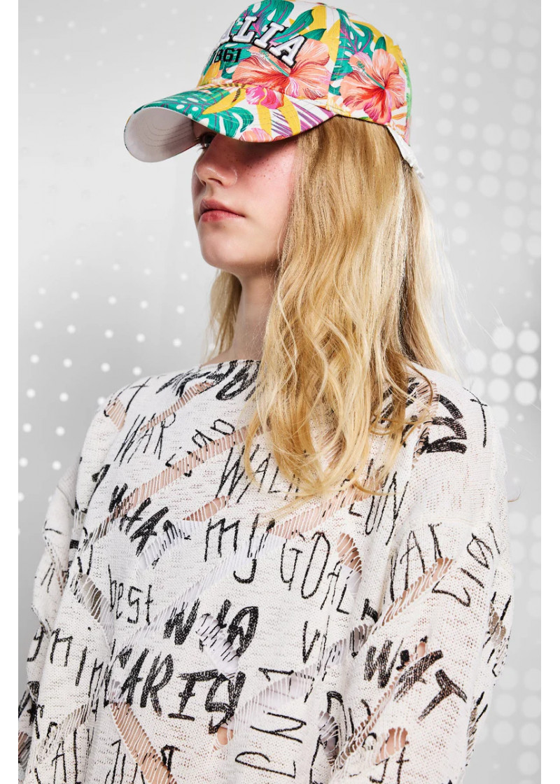 Opis: Ženski oversized džemper u beloj boji sa printom