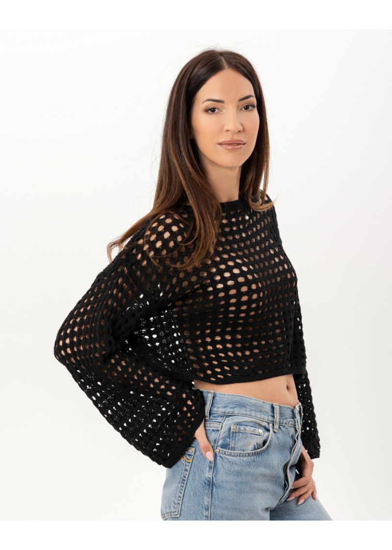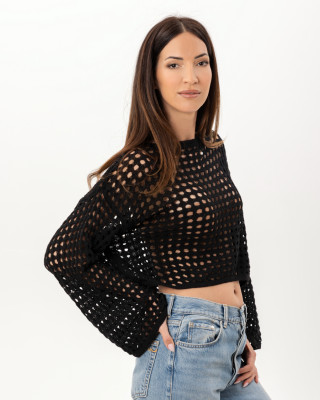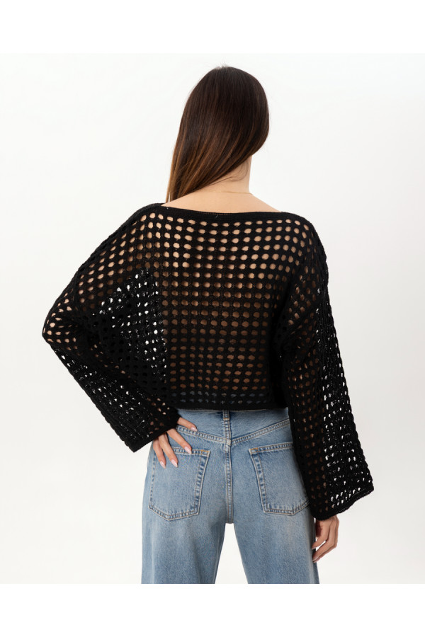 Opis: Kratak prozračan ženski džemper u crnoj boji