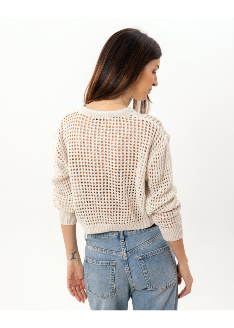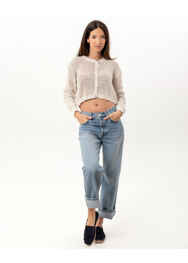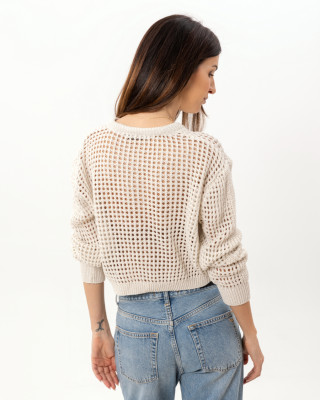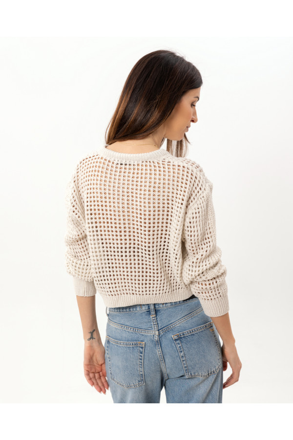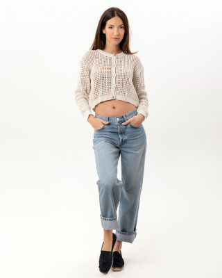 Opis: Kratak ženski džemper u bež boji sa dugmićima