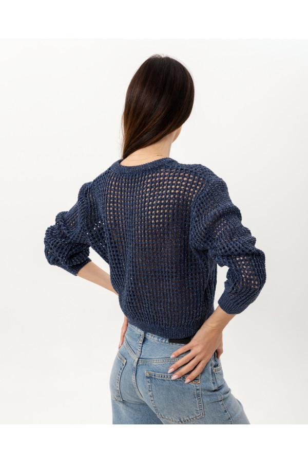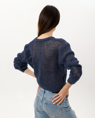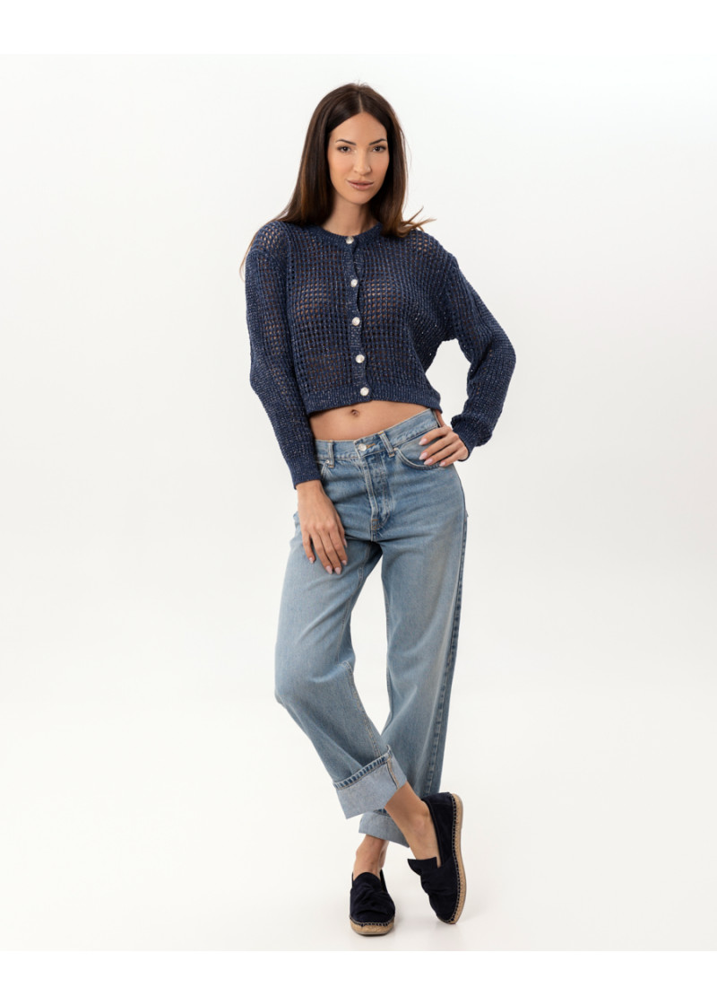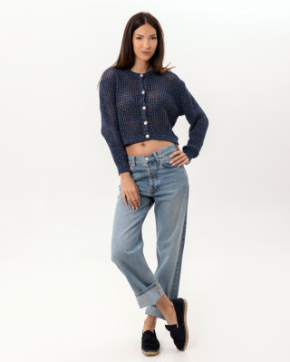 Opis: Kratak ženski džemper u teget boji sa dugmićima